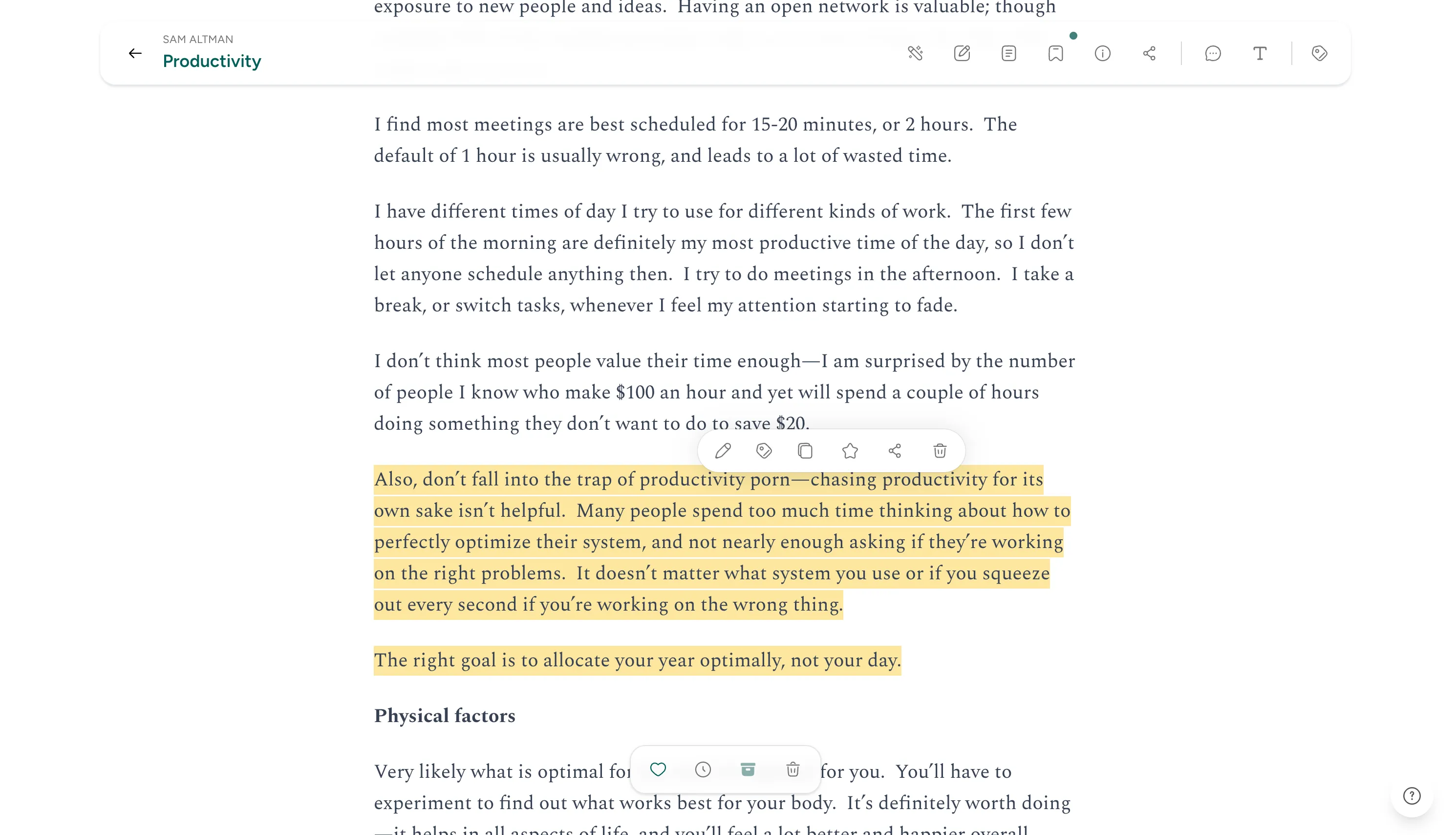 Research shows that active reading - highlighting and saving key insights - significantly improves comprehension and retention of information.